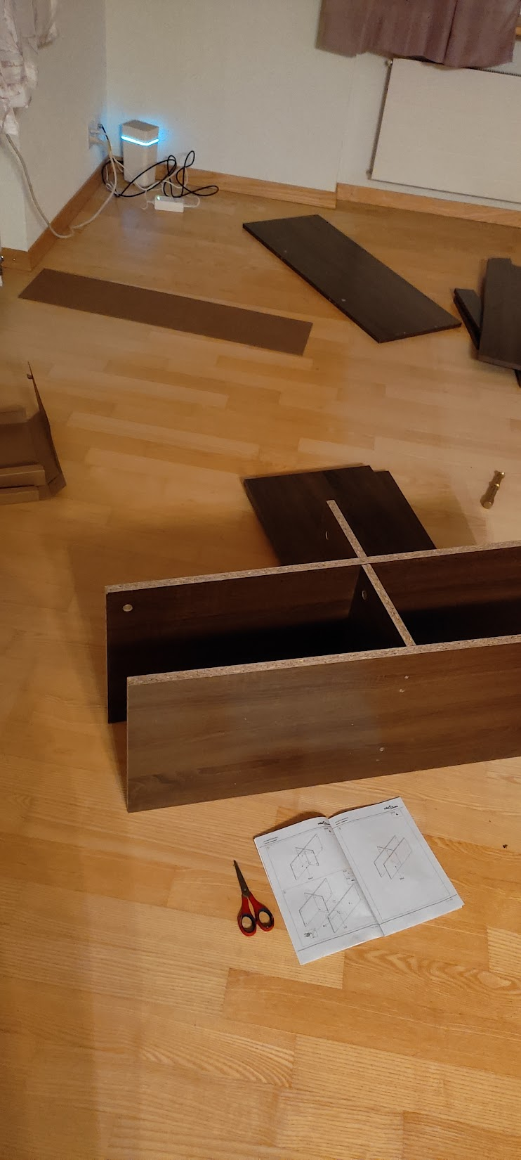 Perhaps needless to say — the story had a surprisingly happy ending, as I got each step in the manual done all by myself, including the integration of LED lights into the cabinet, and with only my substitute tools. As trivial as this may sound to someone who has put together many a pieces of furniture, this felt like a big win to me.